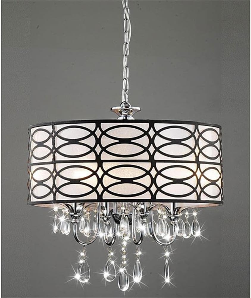 Round Drum 4 Light Antique Bronze Crystal Chandelier Pendant