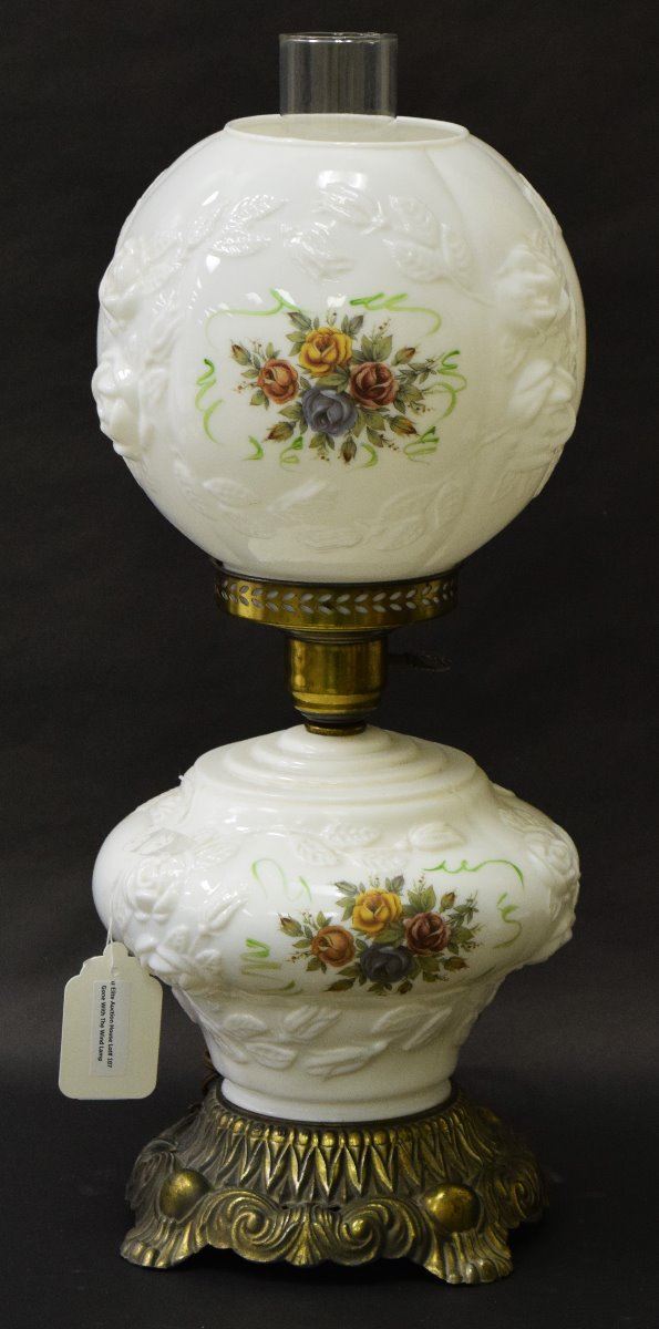Vintage Gone With The Wind Hurricane Lamp W Brass Floral Design