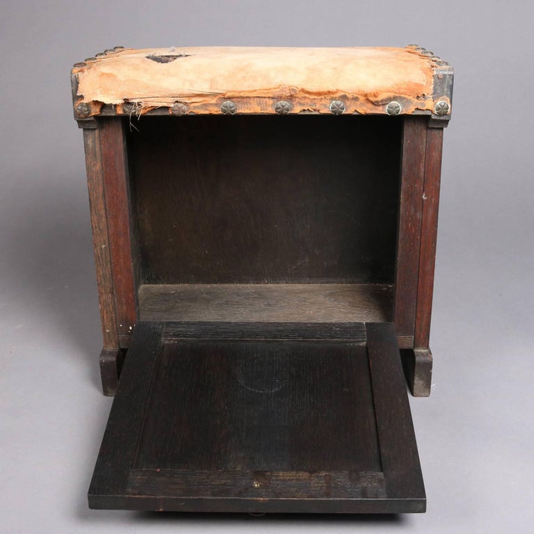 Sale Vintage Shoe Shine Box Stool Rare Tiger Wood Brass Cast