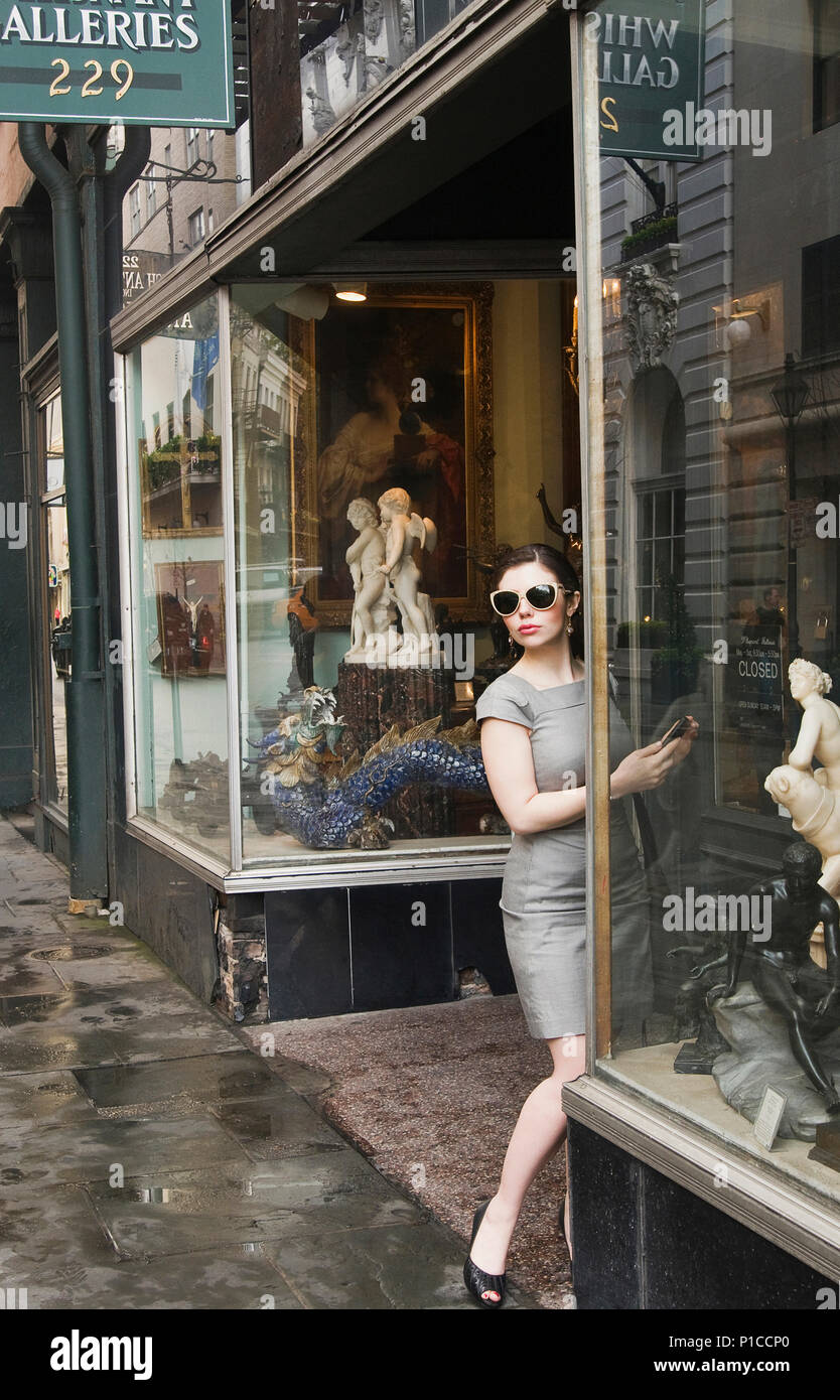 A Young Woman Antique Shopping On Royal Street In New Orleans