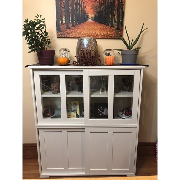 Simple Living Antique White Sliding Door Stackable Cabinet 25 X 42 X 13 Tempered Glass Door Sliding Wood Doors Glass Cabinet Doors