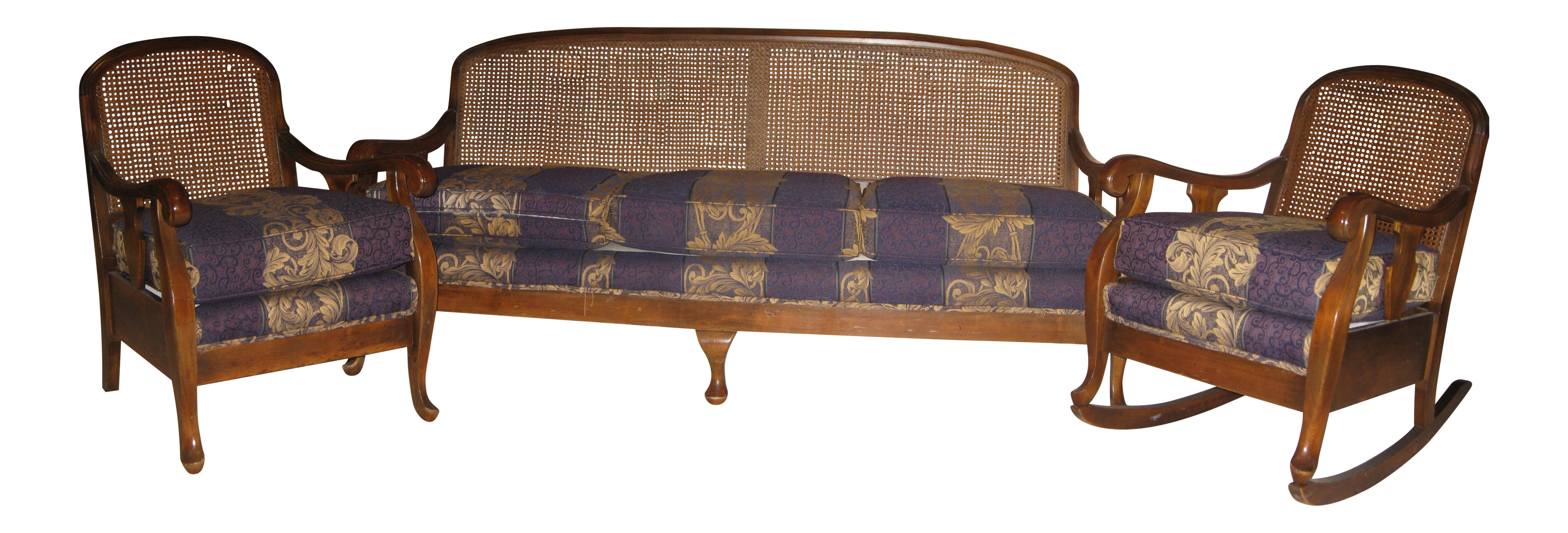 Antique Three Piece Set Cane Back Sofa Chair And Rocking Chair