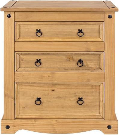 Sol Solid Antique Pine 3 Drawer Bedside Cabinet Amazon Co Uk