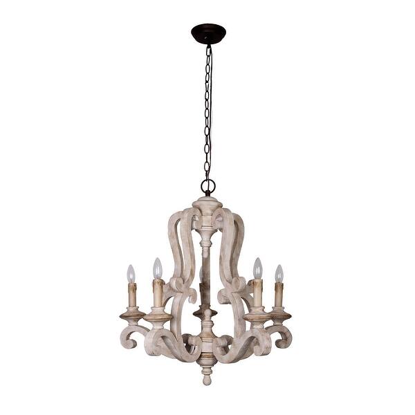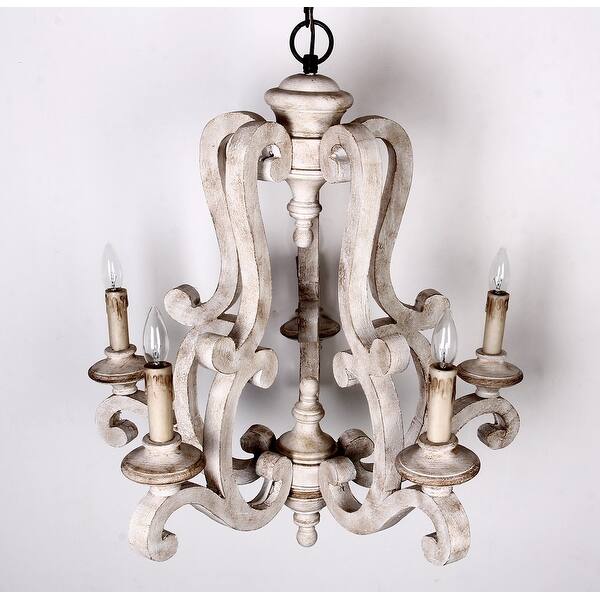 Shop Farmhouse Distressed Antique White 5 Light Wood Chandeliers