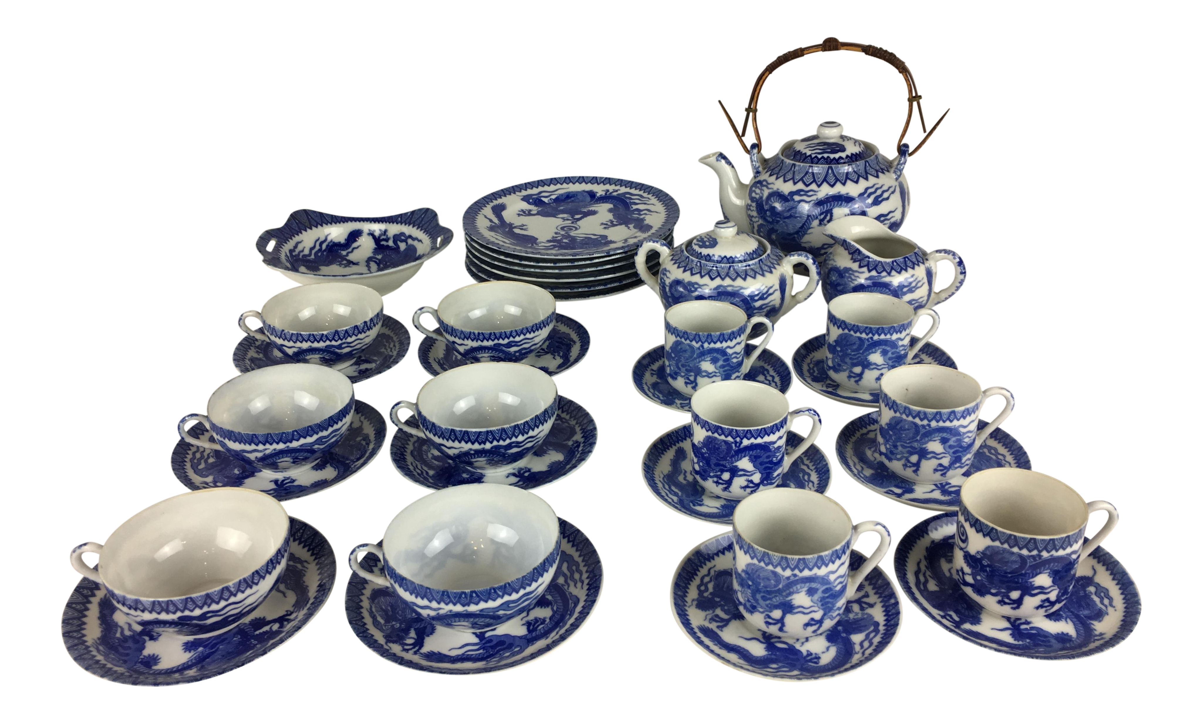 Japanese 19th Century Antique Blue And White Arita Porcelain Tea Set 33 Pieces Chairish