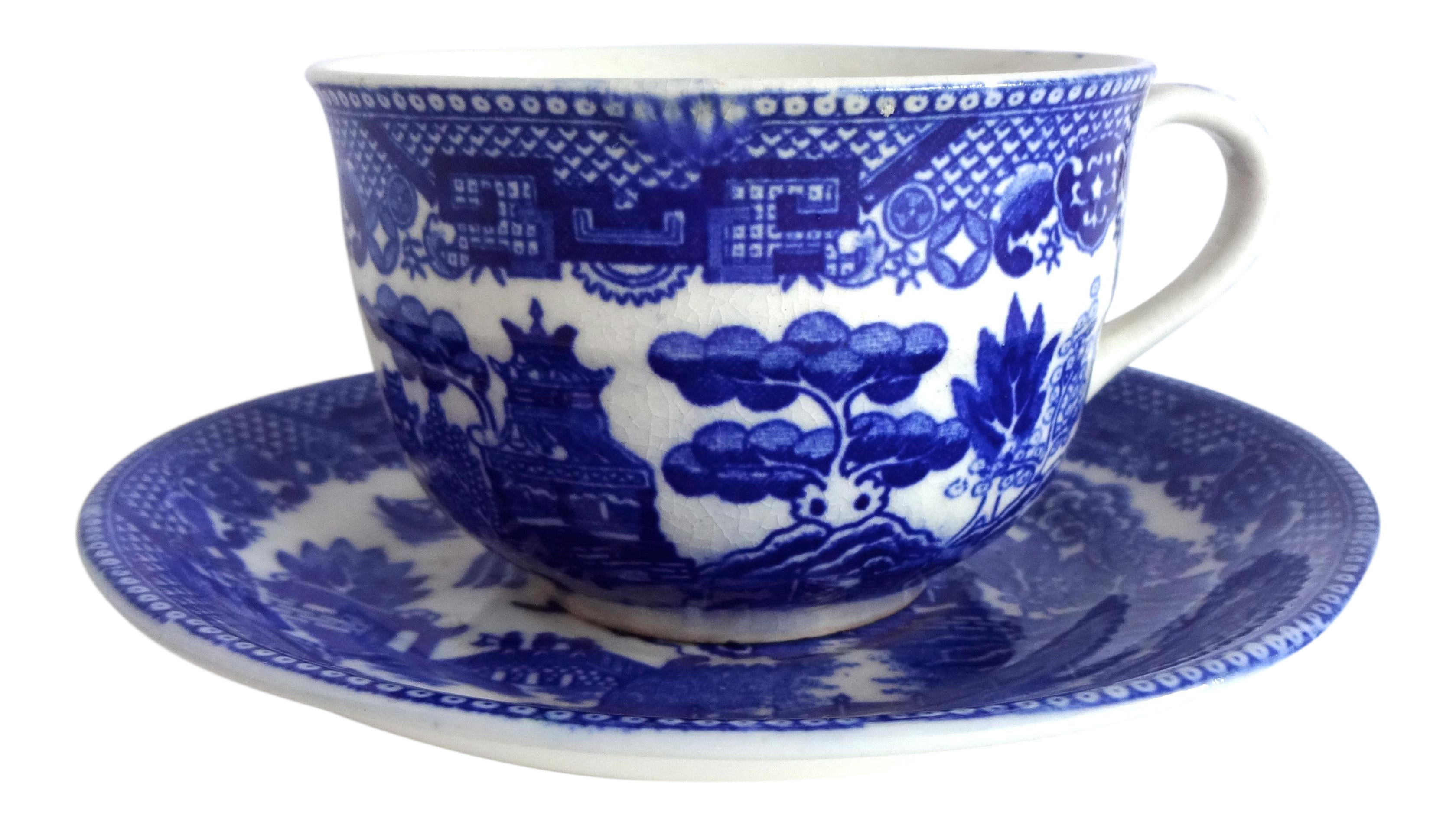Antique 1920s 1930s Blue White Blue Willow Transferware Tea Cup And Saucer Chairish