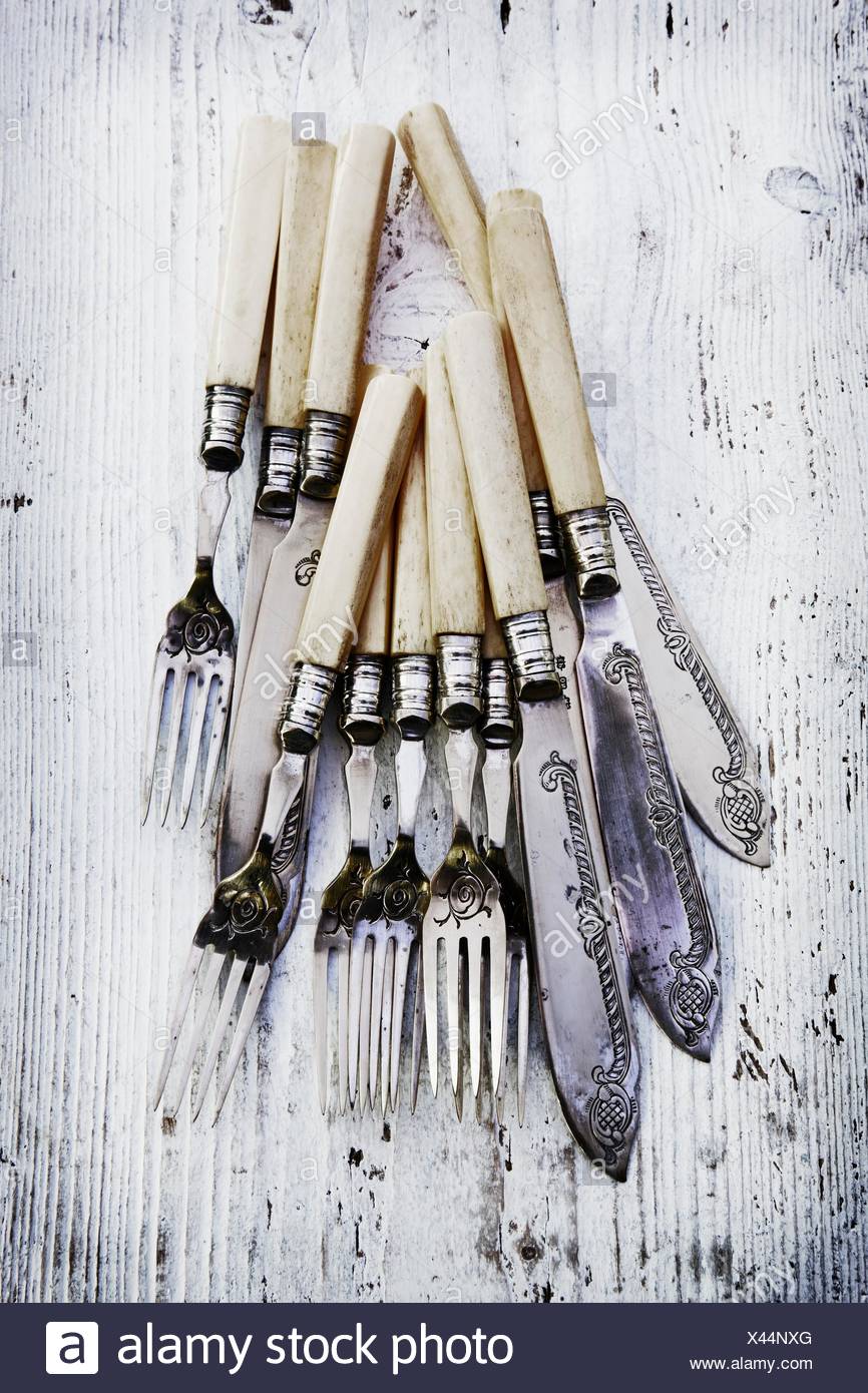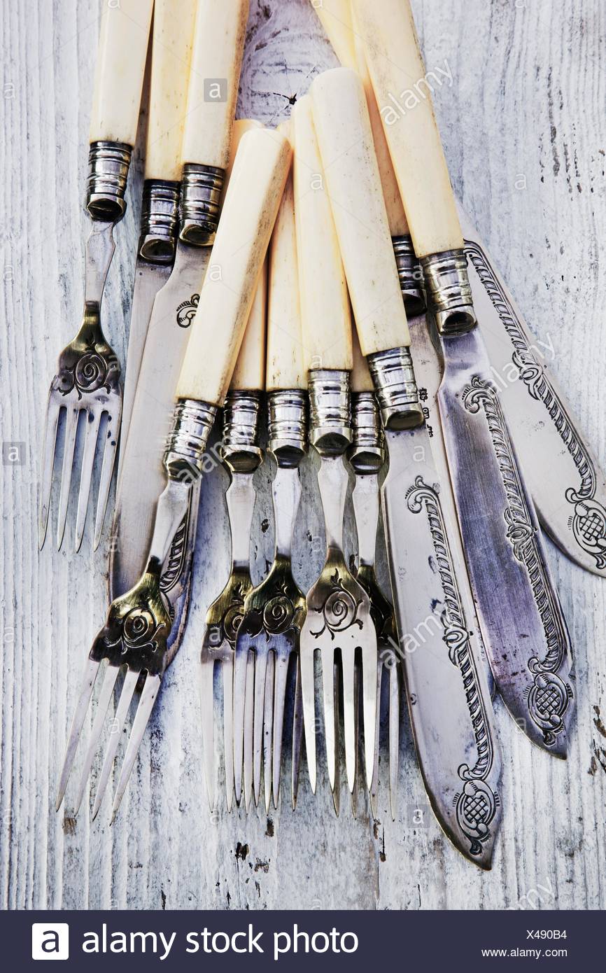 Antique Bone Handled Fish Knives And Forks Stock Photo 277929528