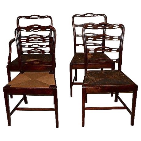 This Is A Set Of Four Antique Rush Seat Ladder Back Chairs The